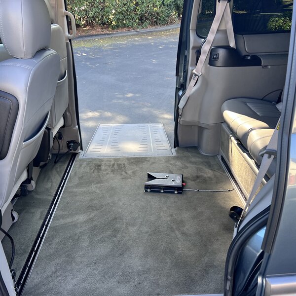 The Braun Entervan is a brand of side-entry wheelchair-accessible minivan originally developed by BraunAbility on various minivan chassis like the Chrysler Town & Country, Honda Odyssey and the Pontiac Montana. Key features include a lowered floor, an automatic kneeling system to reduce the ramp angle, a power sliding door, and a power ramp for easy entry and exit. The Entervan also often includes removable front seats, allowing a wheelchair user to ride in the front or drive the vehicle.
